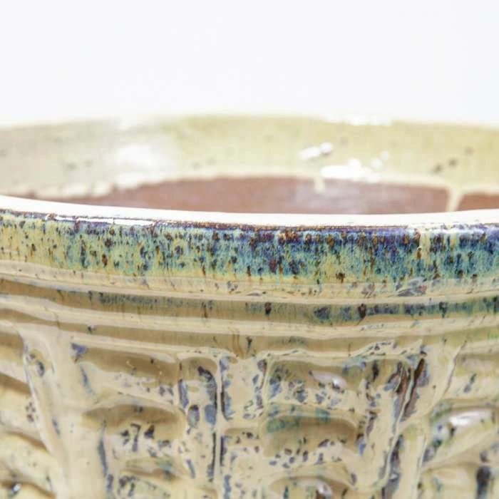 This deeply appealing glazed ceramic cream planter is attractively decorative and a wonderful way of showcasing your favourite plants. Its weave-effect design is pleasingly eye-catching and creates a natural aesthetic that blends with any garden design, whether it be traditional or contemporary. When ceramics are made they are fired in a high temperature kiln, helping to reduce porousness and vulnerability to the elements, making it a terrific material for a planter. Drainage holes also help prevent overwatering.
