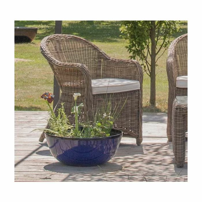 This royal blue glaze effect bowl planter will blend in with the nature of your outdoor space whilst bringing some rustic style to your garden that will look exquisite when paired with modern furniture on your patio. The bowl shape of this planter will make a dramatic statement in your garden and patio, ideal for complementing ponds and seating areas, making a stunning entrance to your home.