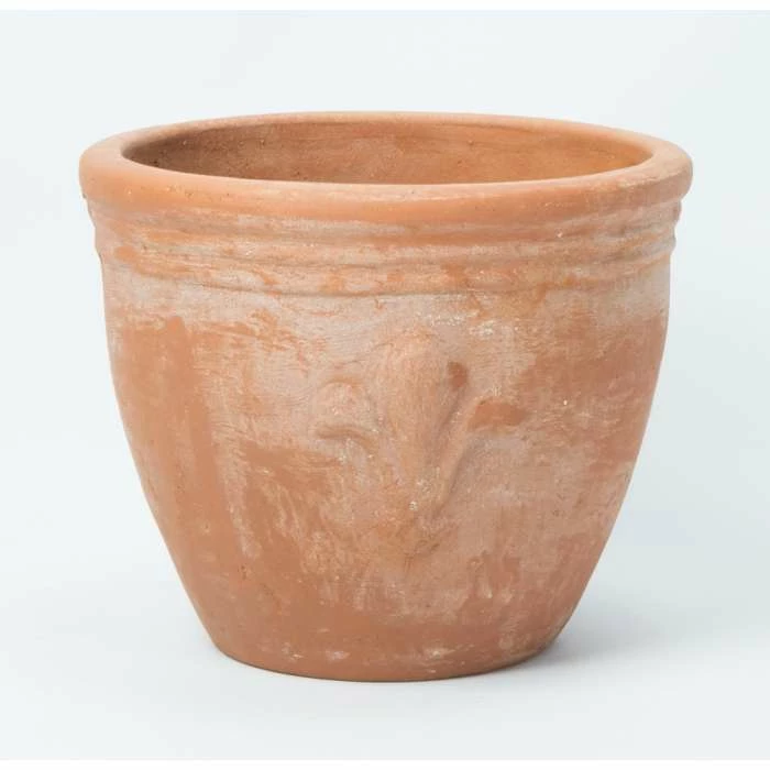 This classic terracotta planter is a striking addition to any garden or patio. The natural earthy colour and detailed fleur de lis design is perfect for complementing plants, flowers and topiary. A timeless and traditional looking material for pots and planters, terracotta has been a popular garden staple for hundreds (if not thousands) of years. This sturdy material is great for resisting bad weather and is also slightly porous, resulting in healthier roots and plants.