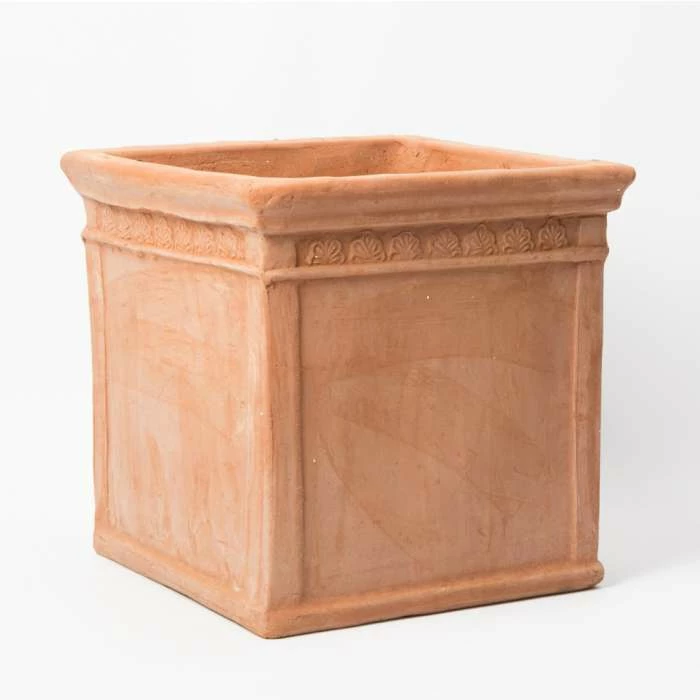 This classic terracotta cube planter is a striking addition to any garden or patio. The detailed rim design and natural earthy colour are perfect for complementing plants, flowers and topiary. A timeless and traditional looking material for pots and planters, terracotta has been a popular garden staple for hundreds (if not thousands) of years. This sturdy material is great for resisting bad weather and is also slightly porous, resulting in healthier roots and plants.