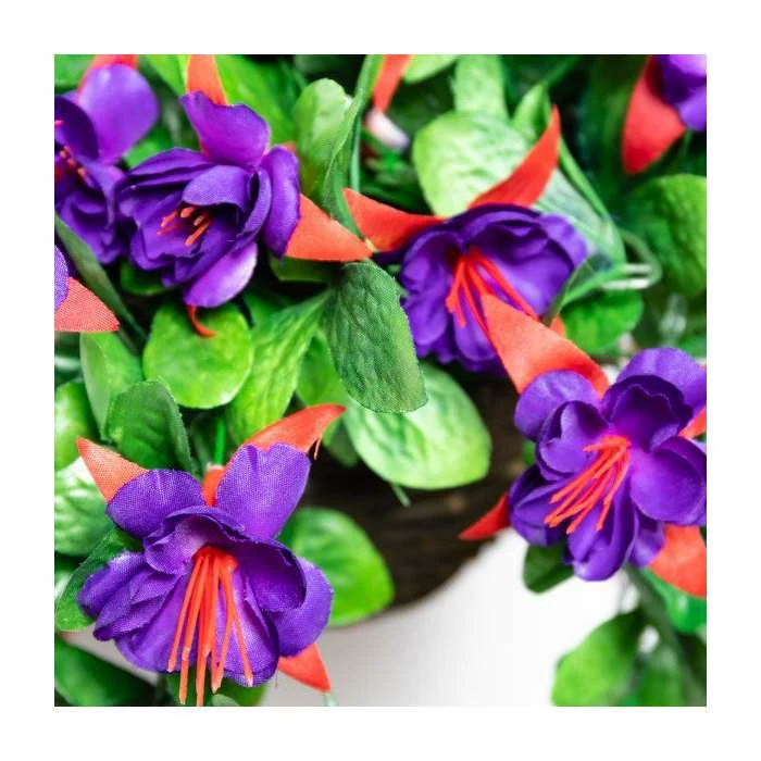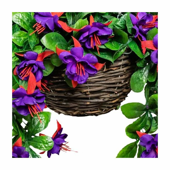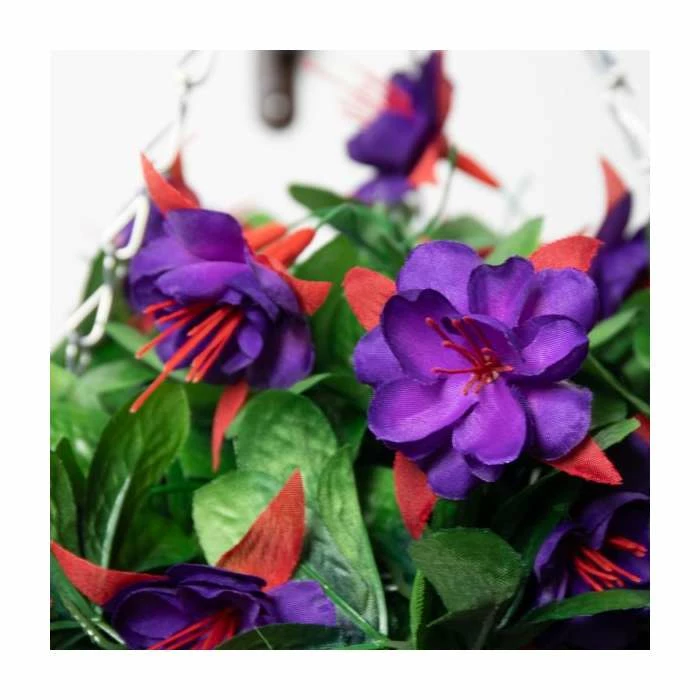 Add a splash of colour to your garden with these fantastic artificial hanging baskets. These attractive baskets contain an array of high quality, artificial fuchsias in a beautiful deep purple colour. With their elegant flower shape they will add a touch of class to any garden. Unlike real flowers you don’t need to wait for these to bloom and can hang them in your garden straight away for an instant impact.