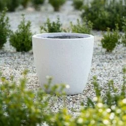 Egg Shape 36cm Handmade Fiberstone Planter in White – Exclusive to Primrose