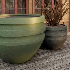 Round Double Rimmed 80cm Handmade Fiberstone Planter in Grey – Exclusive to Primrose